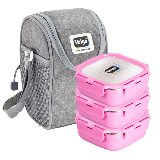 Veigo LunchBoss HeatUp - Tower of 3 in Insulated Pouch ( Microwave Safe)
